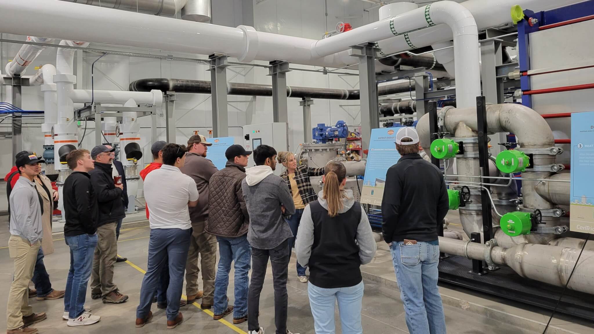 Leslie Fangman, VP of Corporate Development at Centrio, led the group through a tour of the district energy facility that features the largest SHARC system in North America.  The students learned about the inception of the project, the predevelopment process, the construction and the operation of the facility.