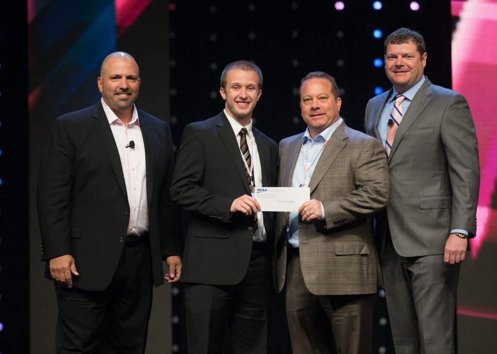 FLASHBACK to the MCAA16 Awards of Excellence Breakfast in Orlando, FL – Pictured: Mark Rogers (JRGF President), Andrew Palcan (Recipient), Robert Beck (John W. Danforth Company), Steve Dawson (MCAA President)