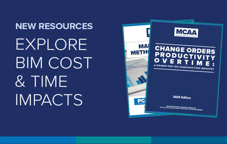 Mechanical, electrical, plumbing and sheet metal (MEP/SM) contractors are normally at the forefront of Building Information Modeling (BIM) activities on a construction project. Substantial BIM cost and time overruns have occurred on many projects due to the fluid boundaries between coordination and design. MCAA’s Identifying, Quantifying and Preventing BIM Related Cost and Time Impacts Management Methods Bulletin explores the factors that contribute to these overruns, allowing contractors to better plan for them. The bulletin is now included in a 2024 edition of MCAA’s Change Orders, Productivity, Overtime—A Primer for the Construction Industry. MCAA members can download both resources free as a benefit of membership. Printed copies of the Change Orders resource are also available for purchase.