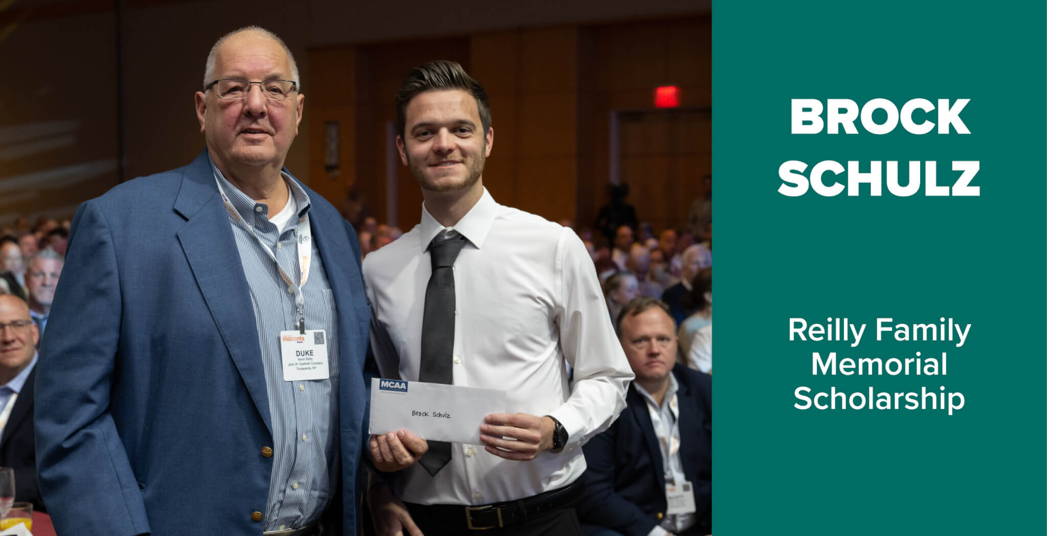Congratulations to Brock Schulz, this year’s recipient of the annual Reilly Family Memorial Scholarship, which honors the late owners (Wayne, Patrick, and Emmett Reilly) of the John W. Danforth Company, one of the preeminent and charter members of MCAA. Kevin “Duke” Reilly presented the award during the Awards of Excellence Breakfast at MCAA23 in Phoenix, AZ.