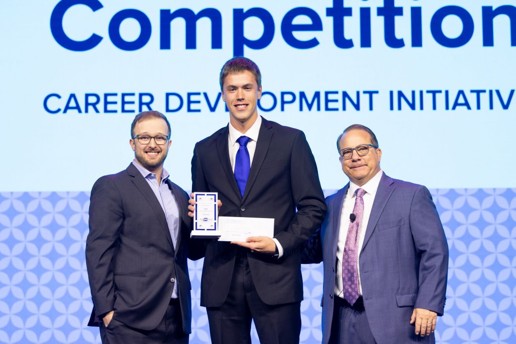 The Career Development Committee recognized a student who did the best job presenting their proposal, whether or not their team won. The audience members voted via a polling link between Final Four presentations and ultimately Hans Stelpflug of the University of Wisconsin-Stout was awarded a trophy, a $500 gift card, a complimentary seat in MCAA’s Preparatory Institute for Project Management (Pre-IPM), and the title of 2023-2024 Most Valuable Presenter.