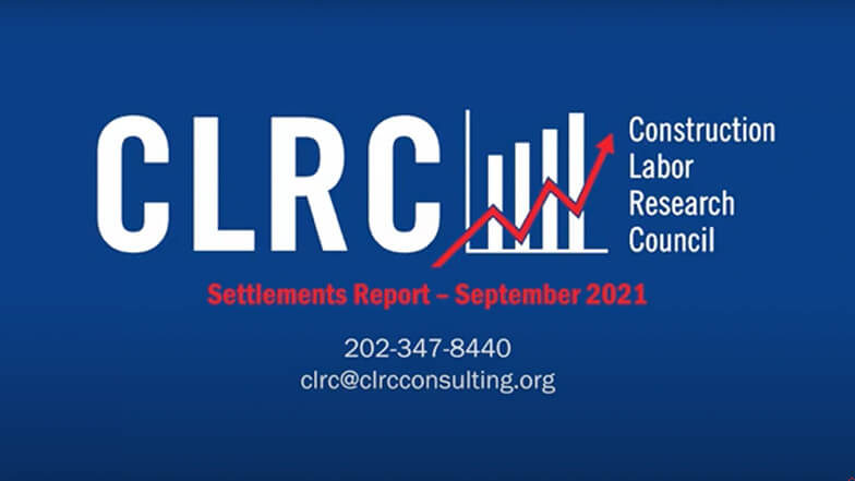 The Construction Labor Research Council (CLRC), a longstanding partner of MCAA, has released its September 2021 Settlements Report and associated video. The report provides timely information on current trends in union craft wage and fringe benefits increases in the construction industry. In addition to a general overview, the report provides various detailed data cuts, including by geographic region and specific craft. For additional information, contact Carey Peters, Executive Director, at 202-347-8440 or clrc@clrcconsulting.org.