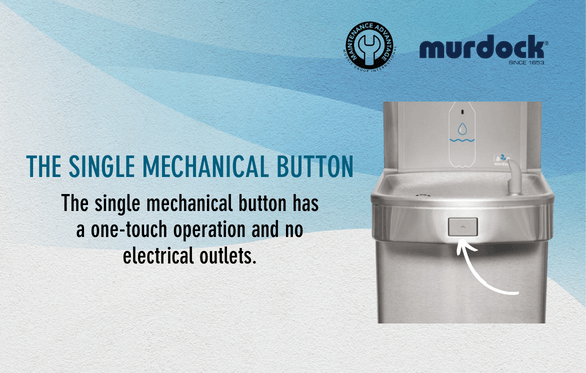 The Maintenance Advantage® single mechanical button feature from Murdock, a member of Morris Group International has a one-touch operation and no electrical outlets compared to other water coolers.
