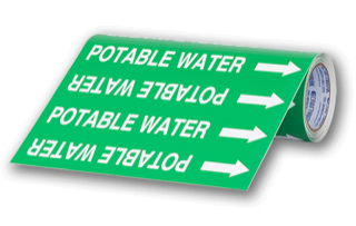 Self-adhesive roll-form pipe markers providing pipe contents identification as well as flow direction. Available in 6”, 8”, 12”, & 24” widths.Meets ASME/ANSI A13.1-2020 Scheme for the Identification of Piping Systems. MCAA members receive a 30% discount and free shipping when ordered online!