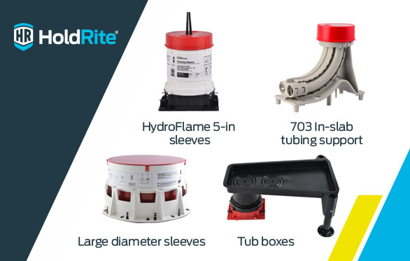 With the new HoldRite 703 In-Slab Tubing Support, HydroFlame Large Diameter and 5-inch Firestop Sleeves, and improved HydroFlame Pro Tub Box, RWC brings efficiency and innovation to new construction.