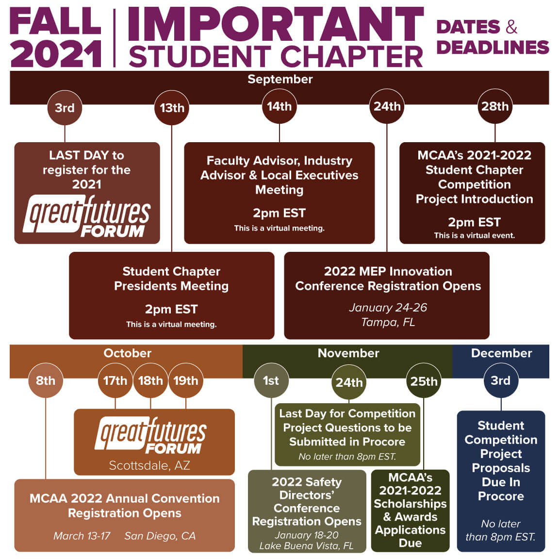 Don’t forget these important dates! All Fall 2021 important student chapter information is here at a glance for you.