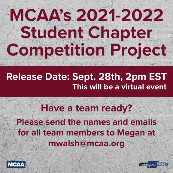 MCAA’s 2021-2022 Student Chapter Competition Project will be released next Tuesday, September 28th at 2pm EST.