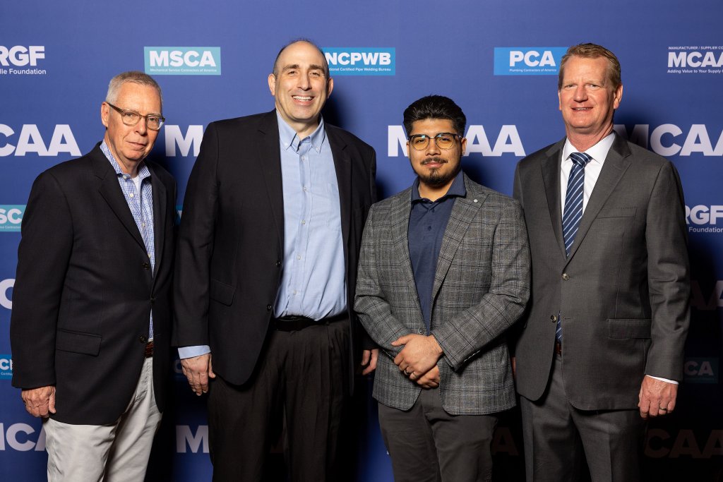 Congratulations to Irvin Quintana, one of the two recipients of the Alan P. O’Shea Memorial Scholarship. The Mechanical Contractors Association of New Jersey established these scholarships to honor the memory of Alan P. O’Shea, its former Executive Director, and to memorialize his many contributions to the mechanical contracting industry. These scholarships were presented by Richard Tomaiko (MCA of New Jersey President) and Phillip Petillo (MCA of New Jersey Executive Director) at the MCAA24 Awards of Excellence Breakfast in Orlando on March 20th.