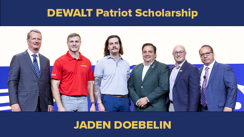 Congratulations to Jaden Doebelin, one of two recipients of the DEWALT Patriot Scholarship, now in its third year. The scholarship was created to recognize veterans, or those who are currently serving in the United States military, and have chosen to enter a career in the trades. MCAA thanks DEWALT Industrial Tool Company for honoring our military and our scholarship recipients for serving our country. Jon Howland (U.S. Navy Veteran) and Greg Polk of DEWALT presented the scholarships at the MCAA Awards of Excellence Breakfast in Orlando on March 20th.