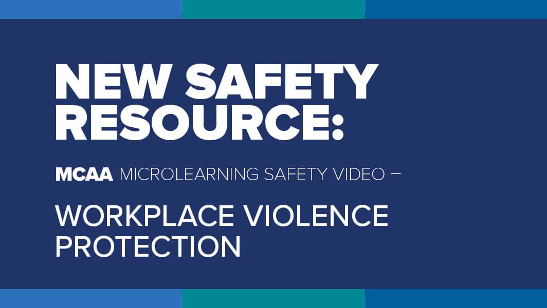 MCAA believes the timing is right to release a microlearning safety video on Workplace Violence Protection. This stand-alone microlearning safety video highlights the vital course of action to protect yourself and your co-workers in the event of a workplace violence incident, such as an active shooter.