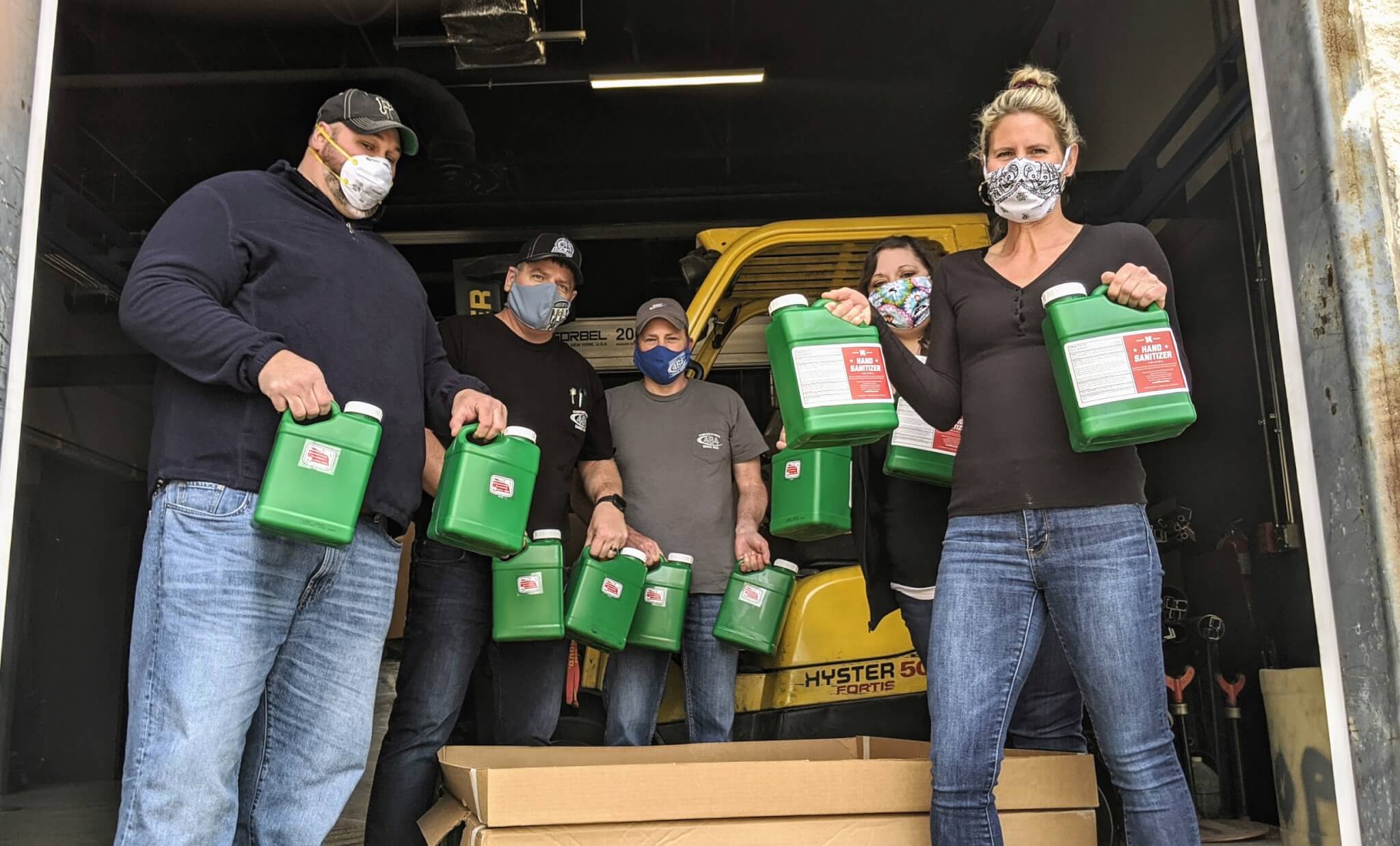 On Tuesday, April 28, each of the contractors that requested hand sanitizer sent one representative to pick up the sanitizer from the union hall.