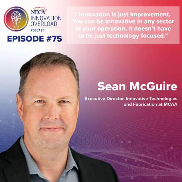Sean McGuire, MCAA’s Executive Director, Innovative Technologies & Fabrication, is featured in this month’s episode of the National Electrical Contractors Association (NECA) Innovation Overload Podcast. He talks about mental health, process improvement, fabrication and practical ways to get started in applying innovation across your business.