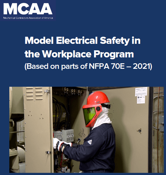 NFPA 70E is the industry consensus standard for electrical safety in the workplace. It is part of the National Electrical Codes, and it is revised by the National Fire Protection Association every three years. The most current version is NFPA 70E – 2021. Parts of the standard help us protect our service technicians from electrical shock and arc flash hazards. One of the provisions in the standard calls for affected employers to establish an electrical safety in the workplace program. MCAA’s Model Electrical Safety in the Workplace Program, which addresses work on mechanical equipment pushing 480 volts or less, was recently revised to make it consistent with NFPA 70E – 2021.