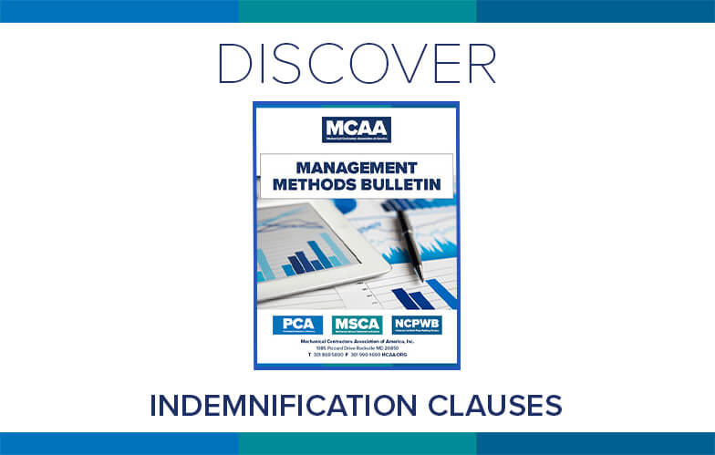 Subcontracts frequently include indemnification clauses to transfer risk from the general contractor (GC) to the subcontractor. MCAA’s Indemnification Clauses explains what these clauses are and what mechanical contractors can do to mitigate their effects. It’s just one of MCAA’s educational resources that are free to MCAA members as a benefit of membership.