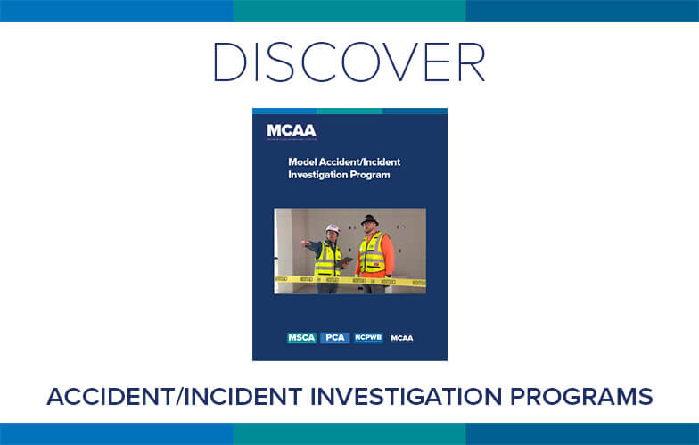 Accidents/incidents impact worker safety and morale, as well as a company’s bottom line. MCAA’s Model Accident/Incident Investigation Program provides a methodical process to help contractors prevent similar repeat accidents/incidents, underscore the company’s commitment to safety, and save money. It’s just one of MCAA’s educational resources that are free to MCAA members as a benefit of membership.