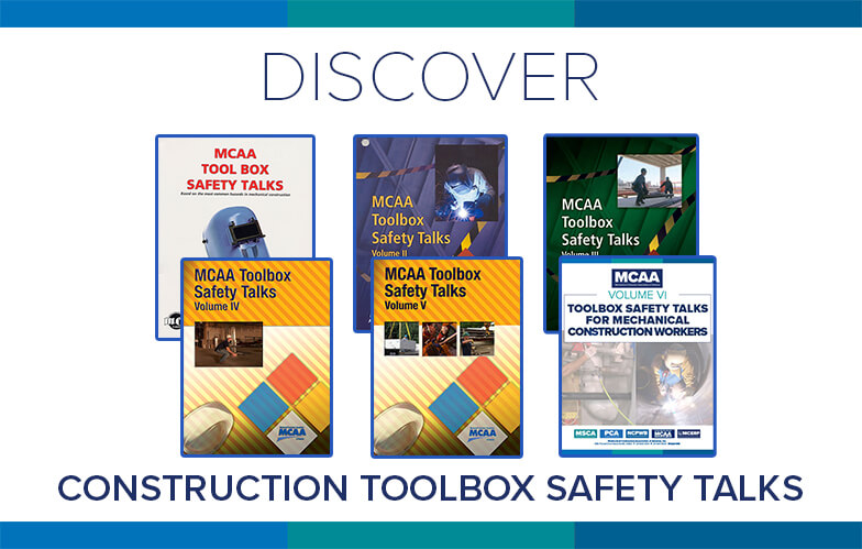 Each week, MCAA will highlight one or more of the educational resources that are free to MCAA members as a benefit of membership. This week, we focus on MCAA’s Mechanical Construction Workers Toolbox Talks. Each of the six volumes in the series includes 52 talks, everything you need for a year of weekly worker safety training without the stress of having to prepare the training from scratch.