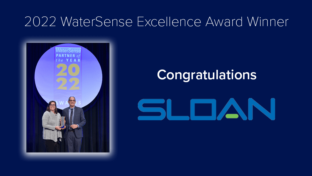 WaterSense honored Sloan as a 2022 Excellence Award winner for promoting WaterSense labeled products in the marketplace. As the only manufacturer of exclusively commercial products, Sloan’s award was distinguished for its extensive offerings of WaterSense labeled flushometers, toilets, urinals, commercial showerheads, and faucets.