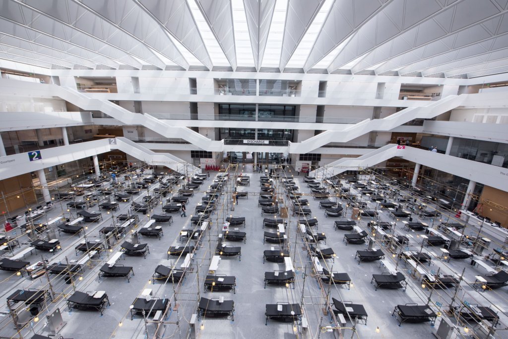The facility, called Hope Hospital, offers onsite care for COVID-19 patients with short term needs. These are patients who do not require ventilators or large amounts of oxygen. The entire project was accomplished in less than a month. The four-story, 477,000-square-foot building can accommodate up to 1,000 hospital beds.