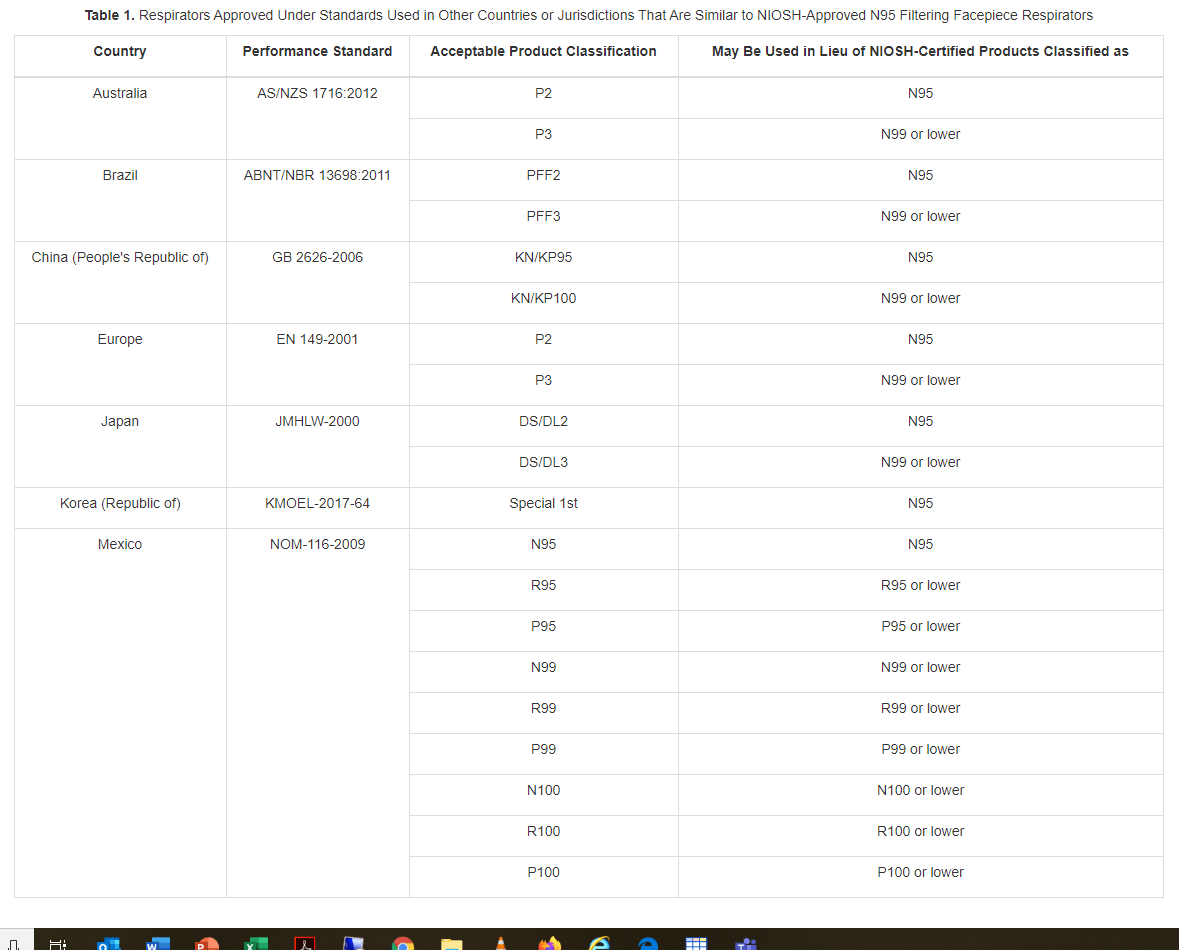 Specific Foreign Made N95 Type Respirator Use is Permissible for COVID-19 Protection