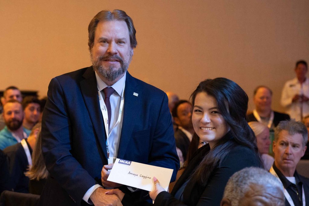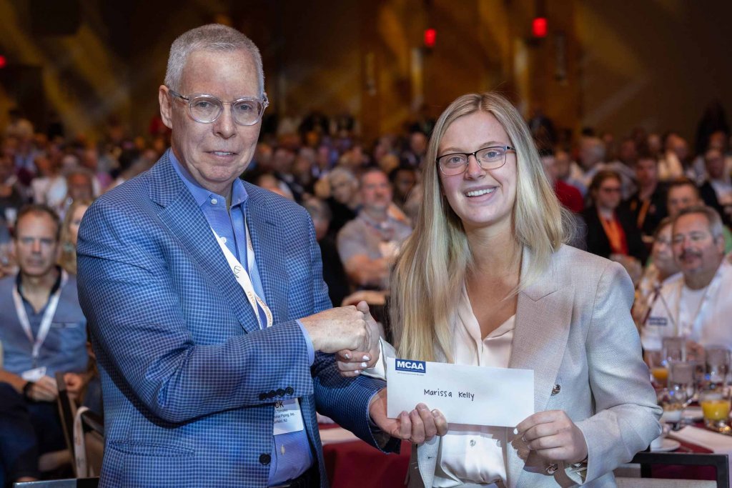 Veronica Brems of Purdue University received a $5,000 scholarship check in memory of a former President of the foundation and MCAA Distinguished Service Award (DSA) recipient, William A. “Bill” Bianco, Jr. The scholarship is sponsored by Kinetics.