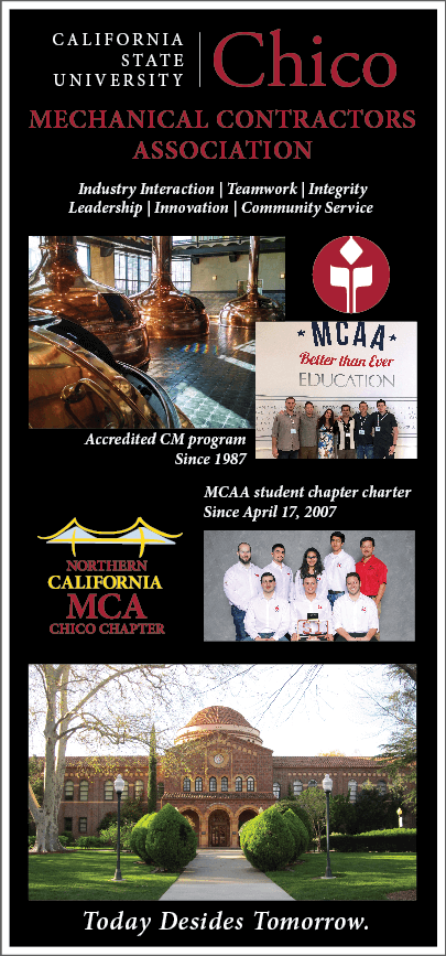 Since we established a student chapter of MCAA on our campus approximately 10 years ago, we have seen a shift from 0% job placement into mechanical contracting firms to between 20-25% of our graduates going into the mechanical and electrical contracting career fields. The Northern California Mechanical Contractors Association has been instrumental in providing our students locally with networking opportunities through events and job site tours with their member companies. We also work closely with the other two Northern California universities with MCAA student chapters for fundraising and events to stretch this networking even further. The education opportunities provided to us through MCAA at no out-of-pocket costs have been priceless for me as the faculty advisor, and especially for our undergraduate students that participate in the MCAA annual student competitions, the annual conventions, and the student summits each year. Our program is general in the sense of construction management education, with only one required course in the combined mechanical and electrical engineering principles course, taught by industry engineers. Without the support of Northern California MCA and MCAA, we would not be able to introduce the depth of the mechanical contracting field to our students, and we would have missed a great opportunity for careers with MCAA member companies.